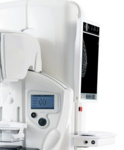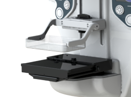 Dos pantallas a color colocadas a ambos lados del brazo en C muestran información sobre la fuerza de compresión, el grosor de la mama comprimida, el formato de colimación, el factor de aumento, el ángulo de proyección y el nombre del paciente. A través de una pantalla táctil, el operador puede seleccionar la lateralidad de los senos y los códigos ACR.
