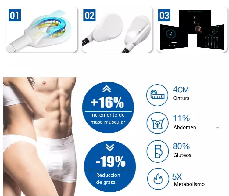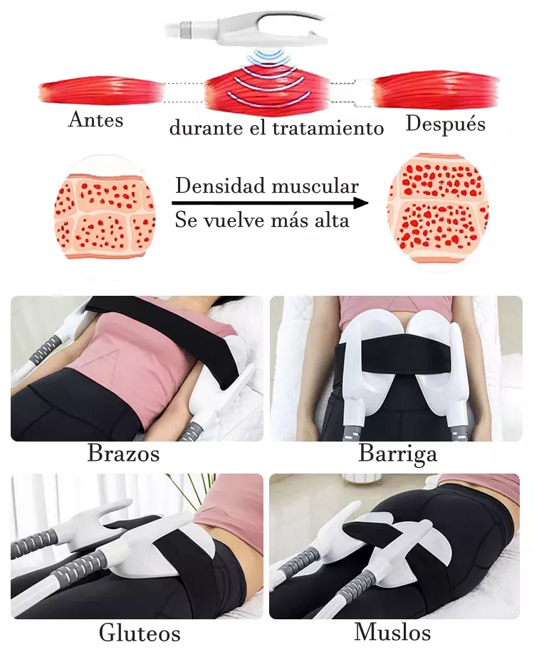 Los pulsos electromagnéticos inducen contracciones musculares supramáximas que obligan al tejido muscular a adaptarse, lo que conduce a un aumento en el crecimiento muscular mientras se quema grasa a través de la lipólisis.